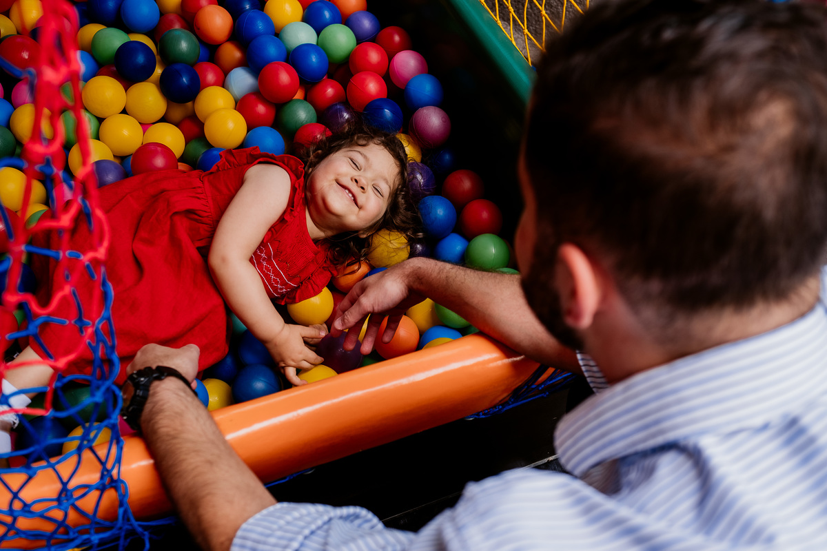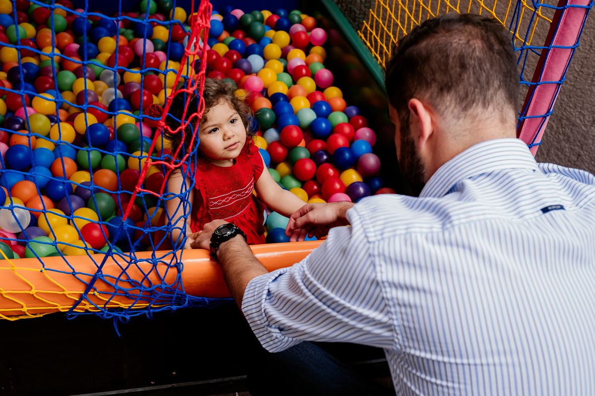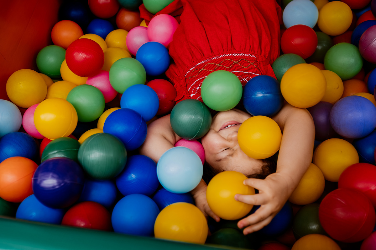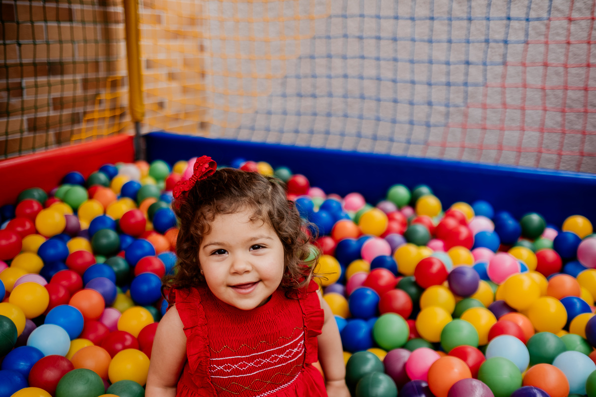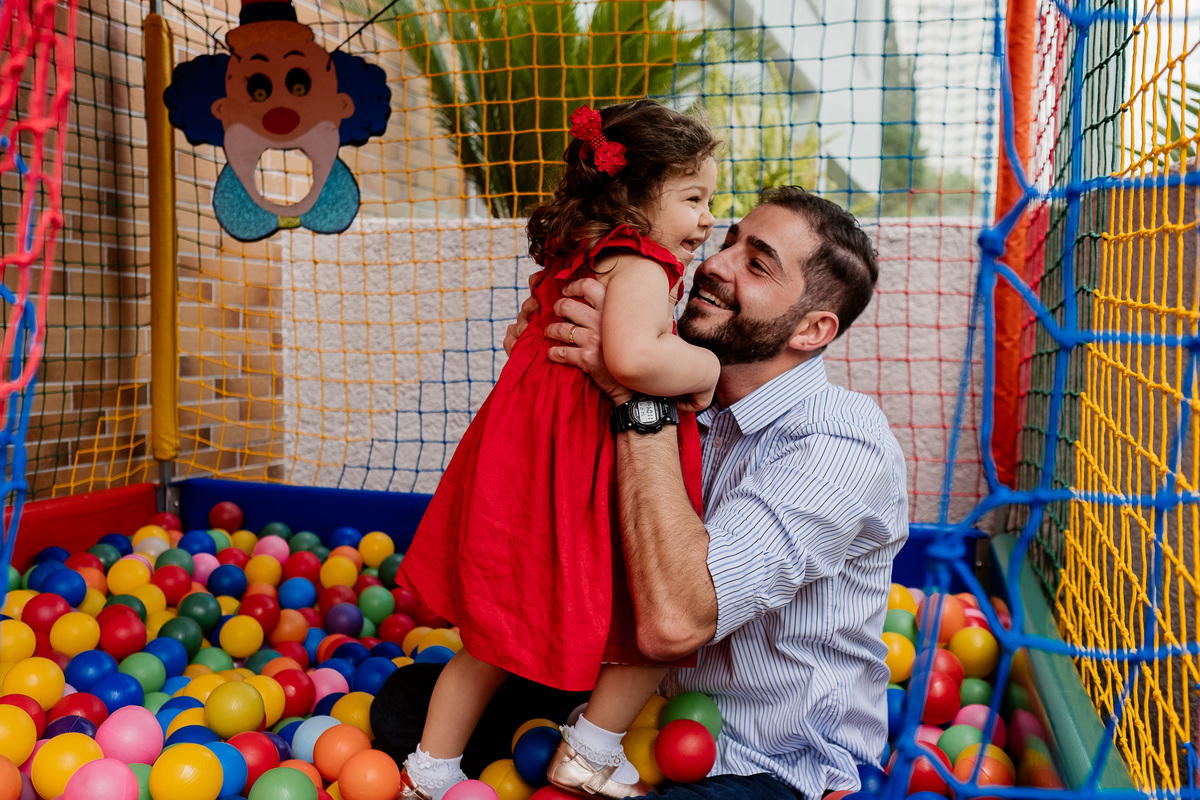 Além disso, precisava trazer na fotografia o colorido do sorriso da Clarinha. A alegria e as bolinhas coloridas deram o tom para o seu aniversário de 2 anos.