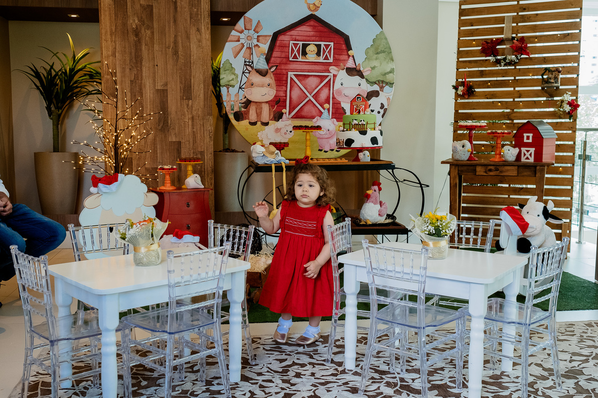 A fotografia e o registro do aniversário da Clara foram feitos por Evelen Torrens, fotógrafa em Curitiba. O tema da festa foi Fazendinha.