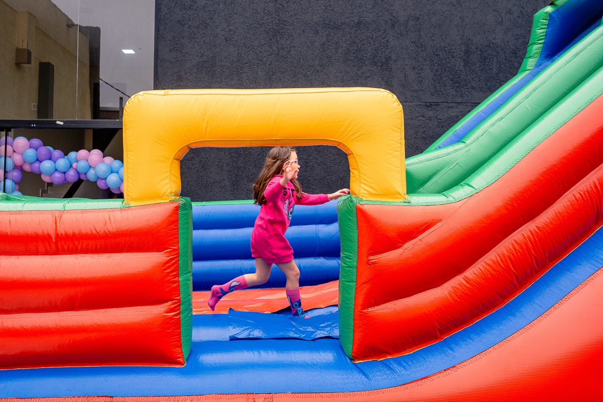 Que alegria registrar mais um aniversário para a Valentina. A festa dela foi in-crí-vel, SUPER animada, com muitos convidados e muita movimentação. A Valen curtiu muito, correu pra lá e pra cá, foi no tobogã, no touro maluco e no seu preferido, o tombo legal (ela ama muito esse brinquedo e não podia faltar). A Fran, mãe dela, preparou muitos detalhes para fazer uma festa inesquecível, onde todos os convidados se sentiram à vontade, com muita comida (muita mesmo) e drinks. A festa aconteceu no espaço de eventos da família.