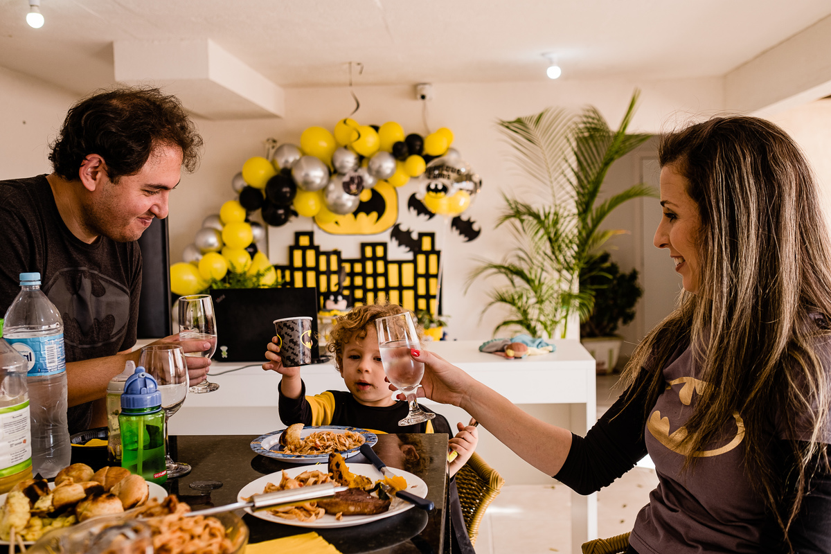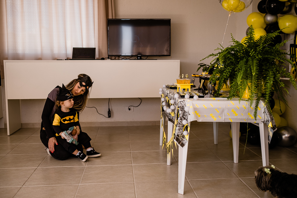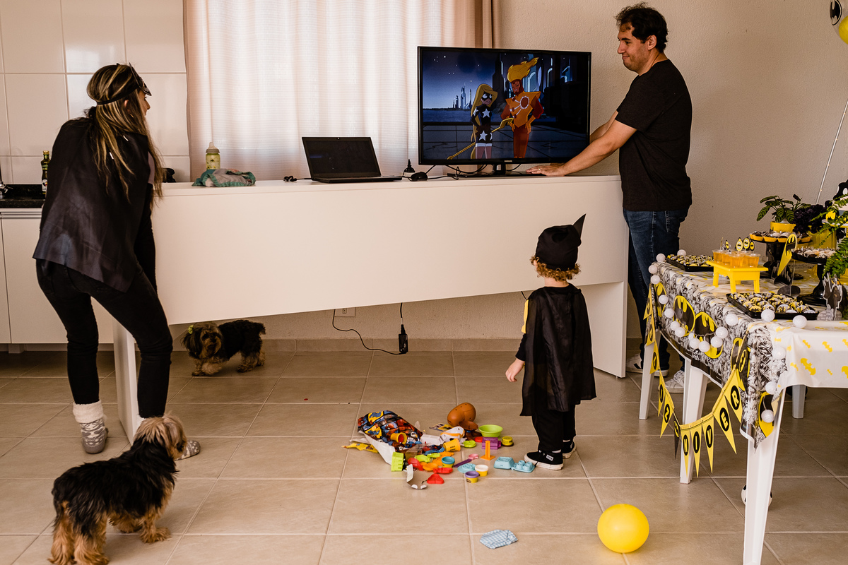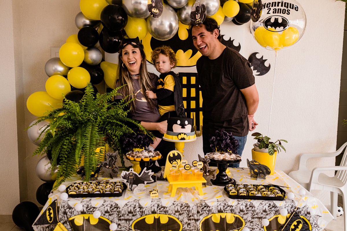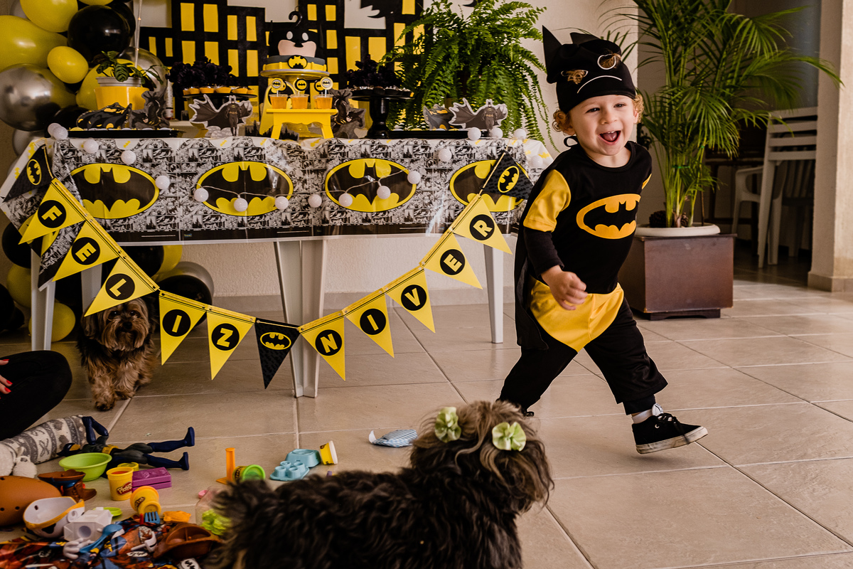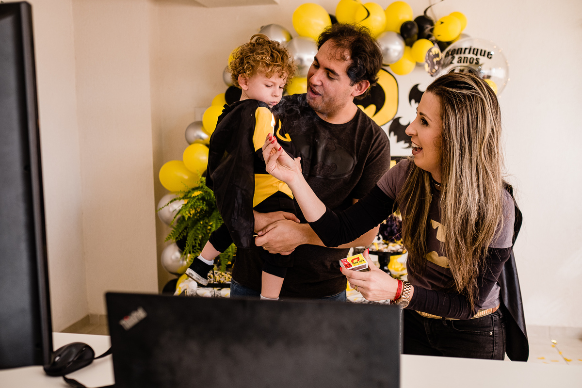 O vírus impediu do Henrique ter uma festa com toda a família e amigos reunidos, mas isso não foi impeditivo de todos se fazerem presentes no dia do seu aniversário. O Rafa e a Claudia trabalharam duro para preparar a festa. O tempo todo eles falavam: depois dizem que festa online não dá trabalho. As risadas já vinham na sequência. Eles se vestiram com o personagem do momento na vida do Henrique: O Batman e esse foi o tema da festa. Os cachorros também marcaram presença! Correram, comeram docinho escondido, fizeram xixi no meio do salão e até deitaram dentro da barraca do nosso. A vovó, lá em Londrina, organizou a entrega de bolos e docinhos para os convidados.
