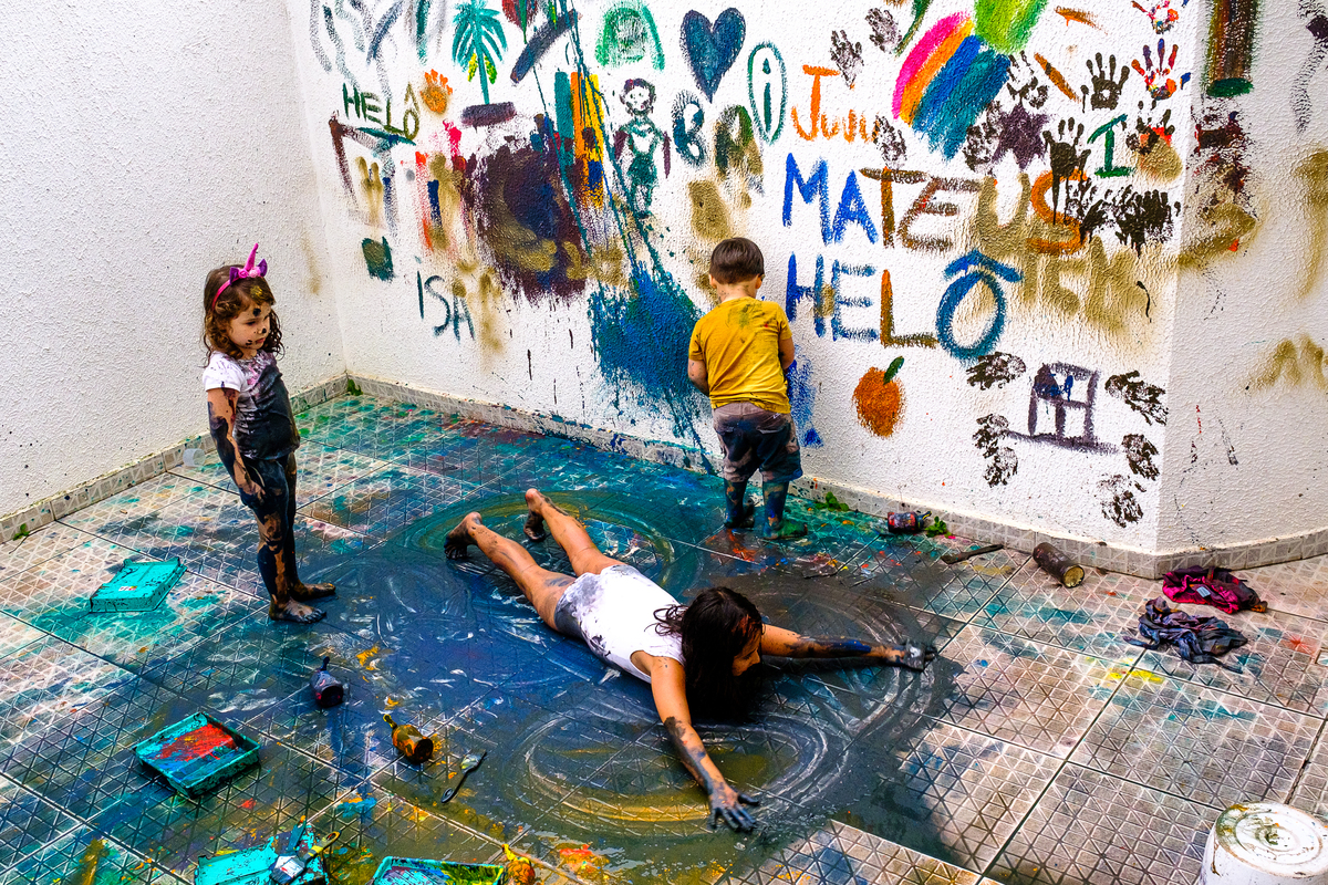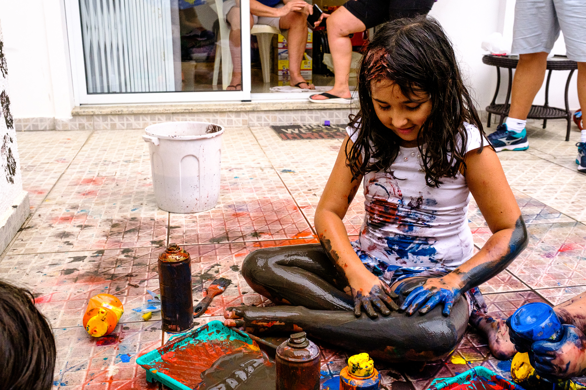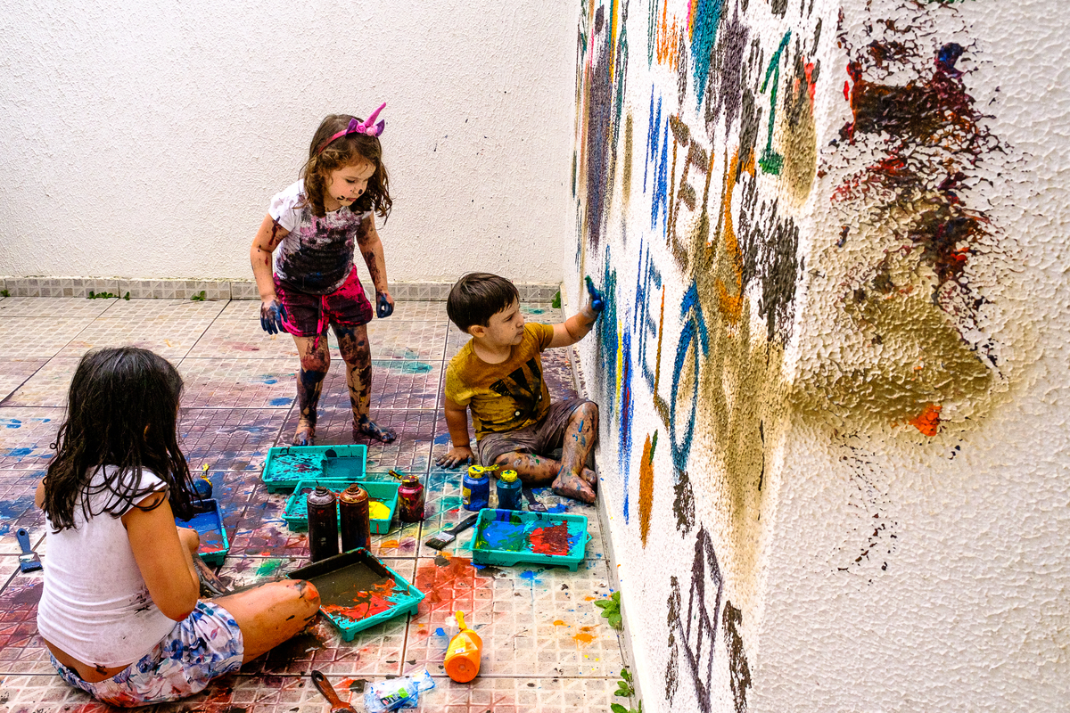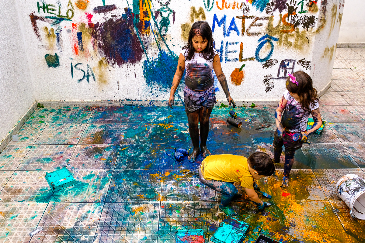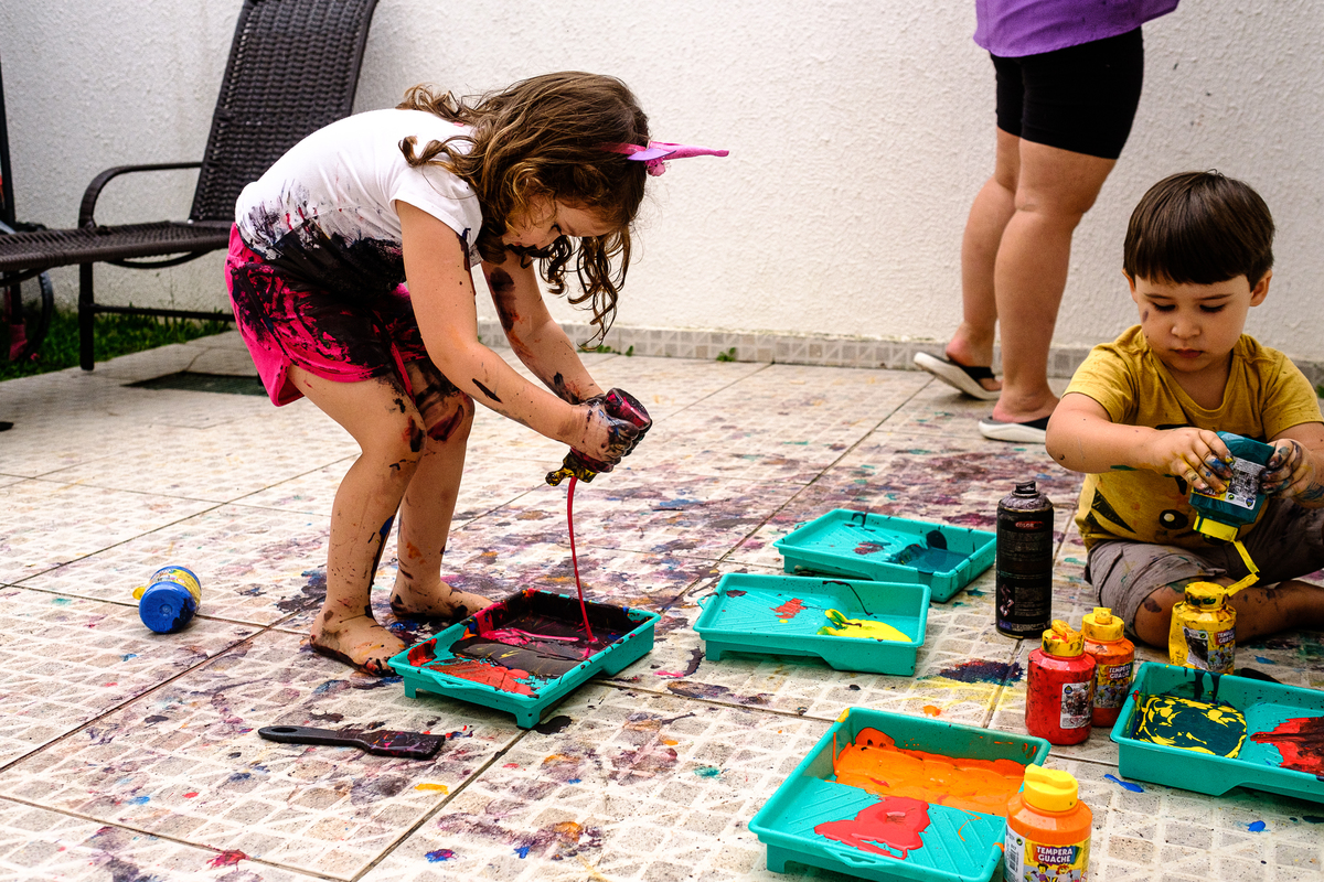 Na casa da Isa e do Rafa tinha um muro no meio do jardim. Pensando em um espaço que se adequasse a realidade com 3 filhos resolveram colocar o muro abaixo, mas antes disso me chamaram pra registrar a bagunça no "adeus ao muro". Helo, Julia e Mateus pintaram o tal muro de ponta a ponta - e claro que não ficou só por aí - o chão e eles mesmos foram pintados. Tinta, bagunça, diversão e um final de dia agitado na casa dessa super família, agora devidamente registrado. E na sua casa é assim também? Me chama que eu quero registrar toda essa loucura que vai deixar saudades.