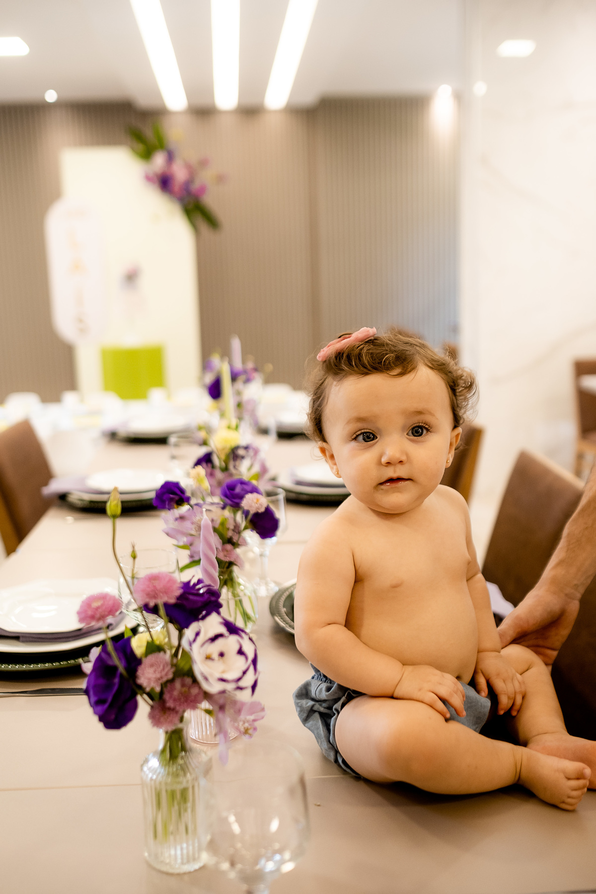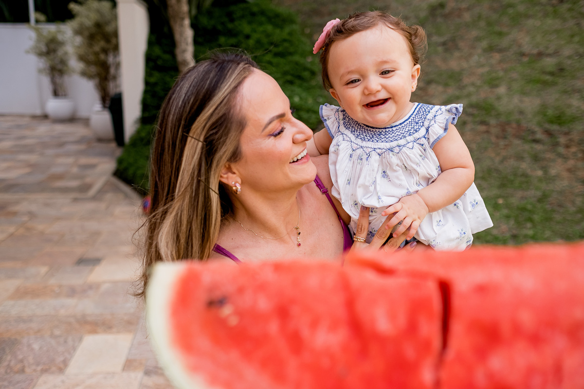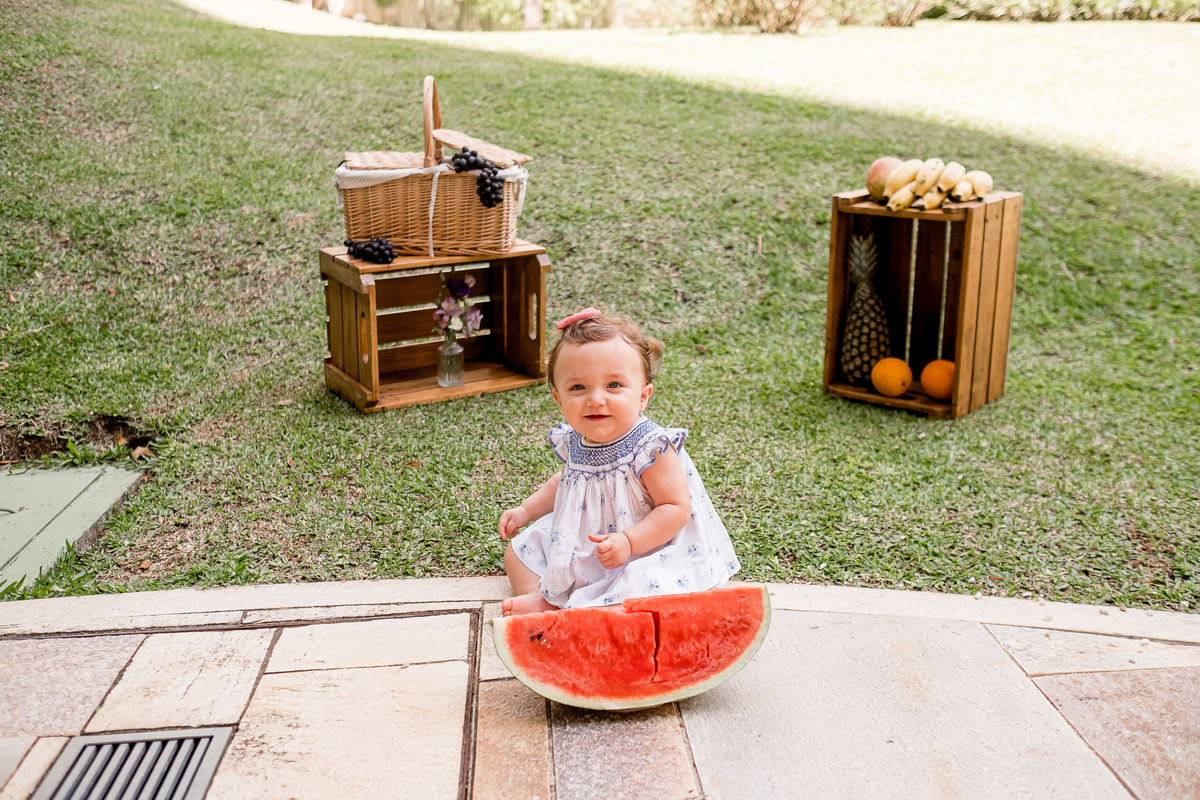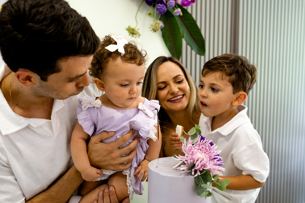 A Laís fez o seu 1º aniversário e eu fotografei tudo, desde ela acordando, seu banho, se arrumando para a festa até ela dormir após o parabéns. No meio disso, teve um mini ensaio de smash the fruit e que ela não curtiu muito (rs...). A festa foi intimista e contou com pessoas de convivência da Lalazinha.
