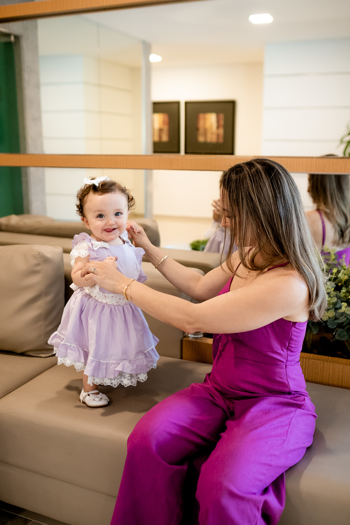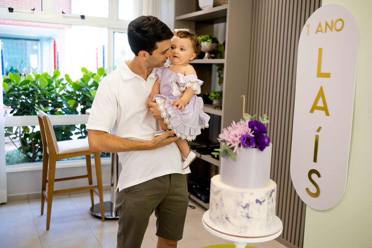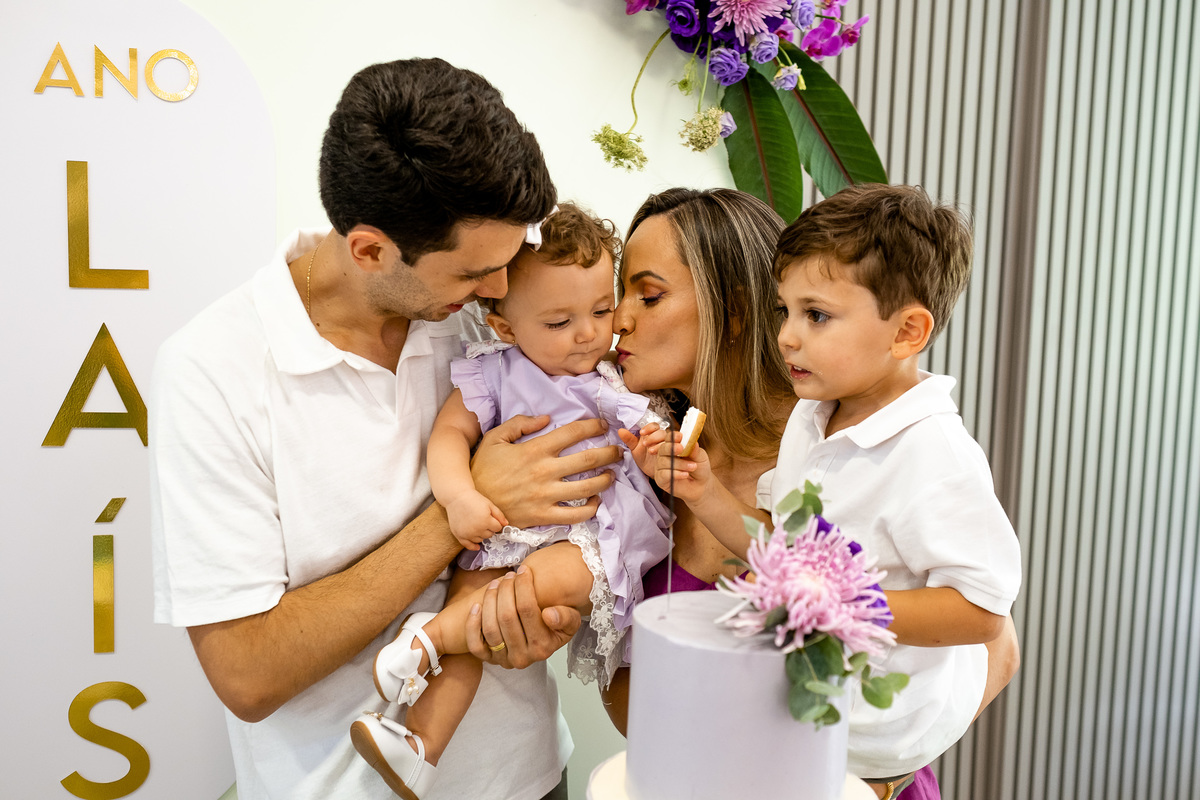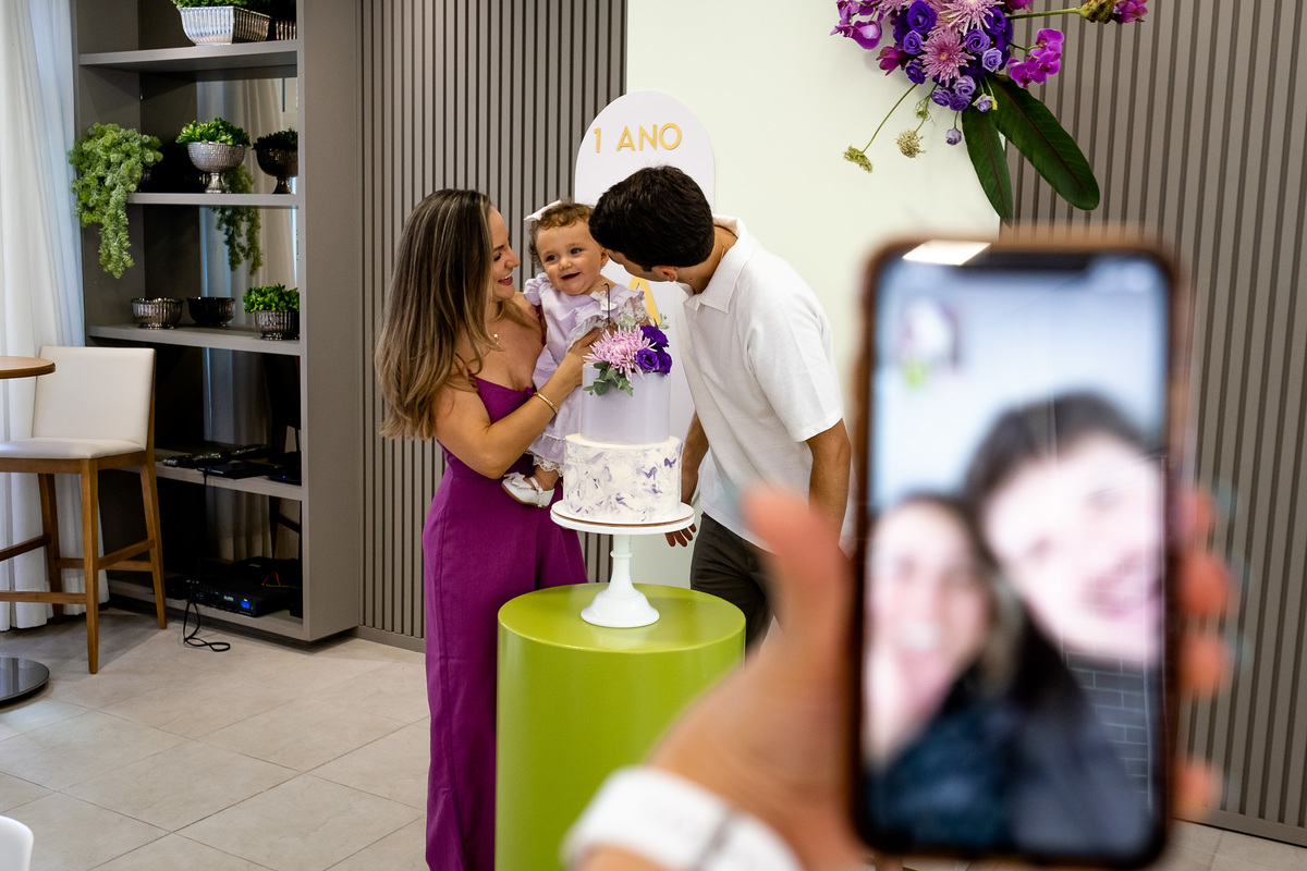 A Laís fez o seu 1º aniversário e eu fotografei tudo, desde ela acordando, seu banho, se arrumando para a festa até ela dormir após o parabéns. No meio disso, teve um mini ensaio de smash the fruit e que ela não curtiu muito (rs...). A festa foi intimista e contou com pessoas de convivência da Lalazinha.