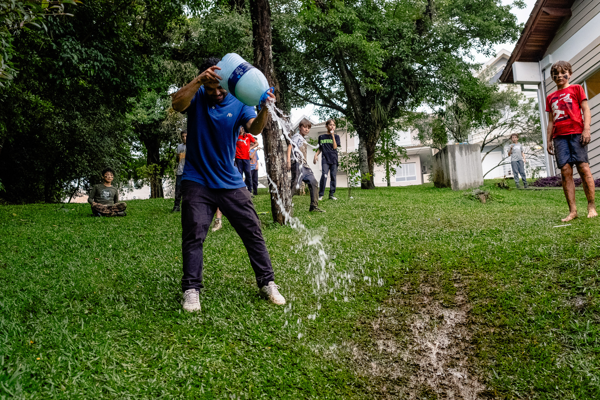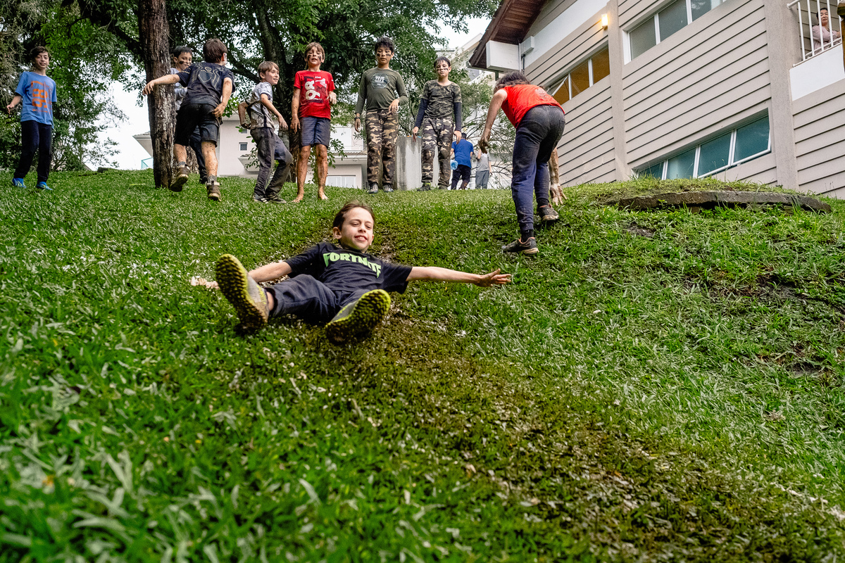 O aniversário do Otto aconteceu em casa e... choveu. Seria desesperador se fosse pensar que as crianças ficariam dentro do salão de festas, mas os amigos do Otto já tinham autonomia para lidar com a situação e resolveram enfrentar o que poderia ser o problema - e aí que a magia aconteceu. Foi uma festa incrível com direito a escorregar no gramado cheio de lama, batalha nerf, geladinho e muito, mas muita troca entre os meninos - e chuva, muita chuva.
