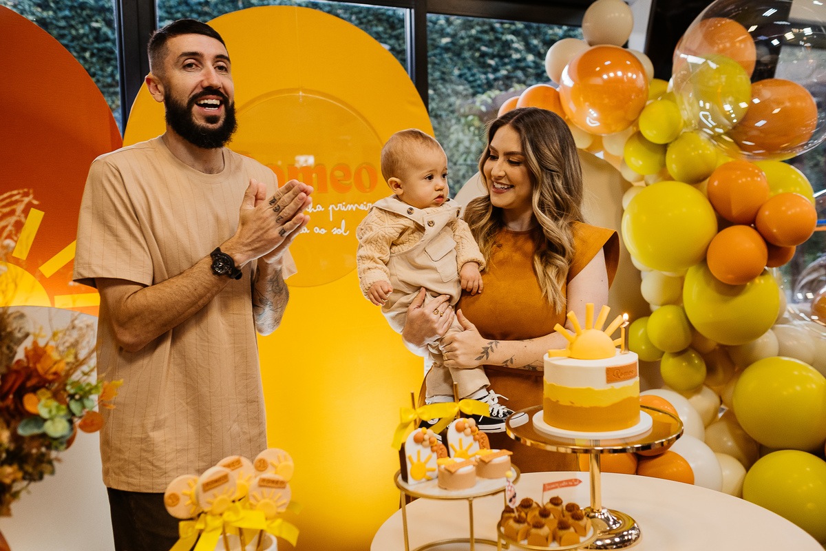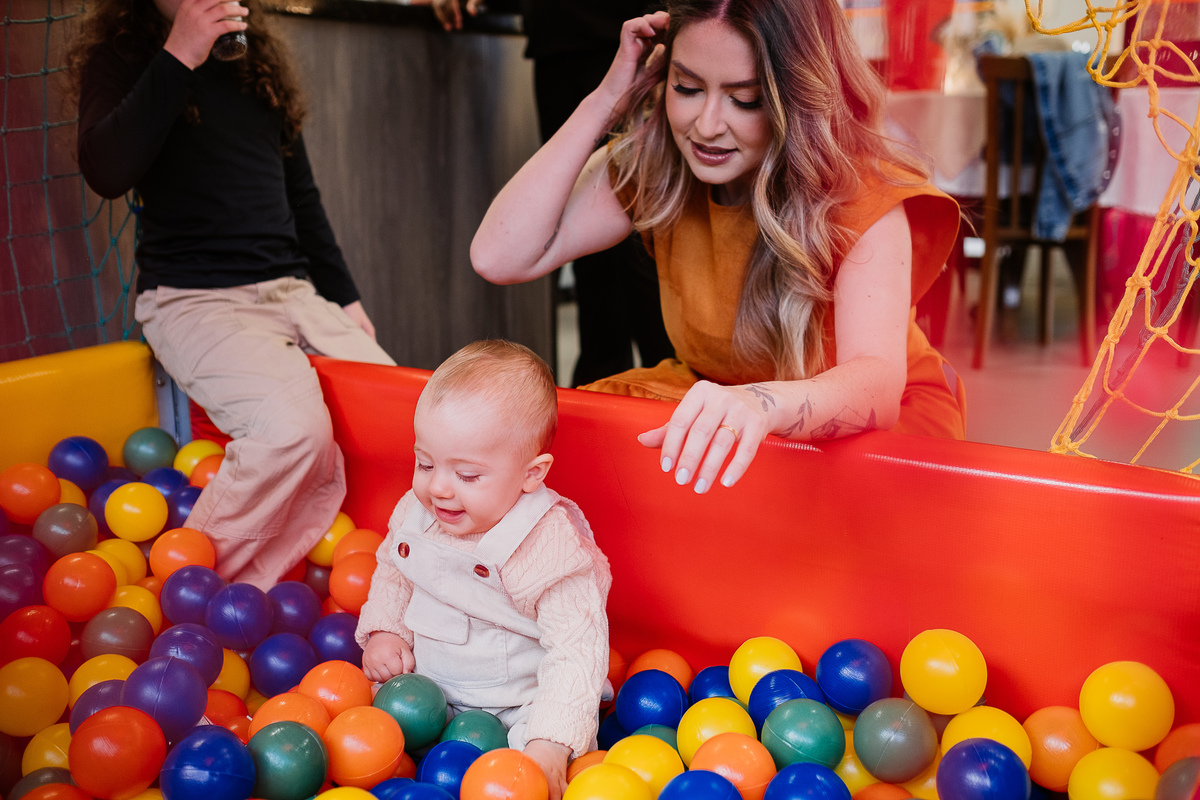 Esse menino, que é puro sorriso, completou sua primeira volta ao sol e teve uma festa digna de alegria, de piscina de bolinha, muitos beijinhos e um cochilo no meio da festa porque ninguém é de ferro.