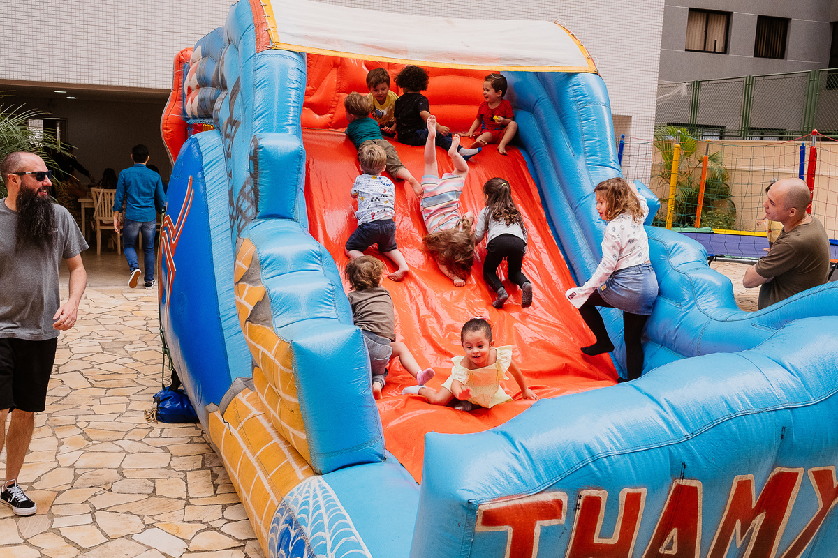Neste último aniversário, o tema da festa foi o Homem-Aranha, e o encantamento tomou conta do lugar. Um brinquedão gigante fez a alegria de Yan e de todos os seus amigos, criando memórias inesquecíveis. Cada sorriso, cada risada, é um reflexo do amor e da felicidade que essa família incrível compartilha.
