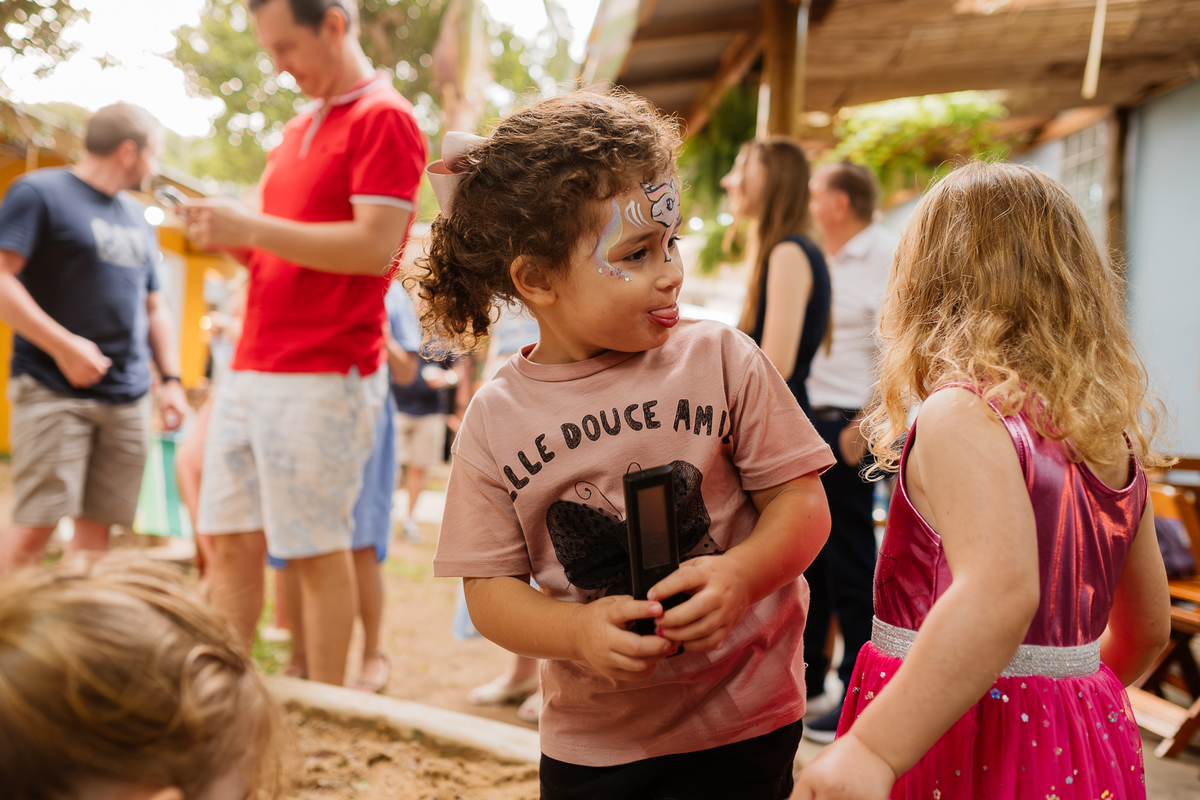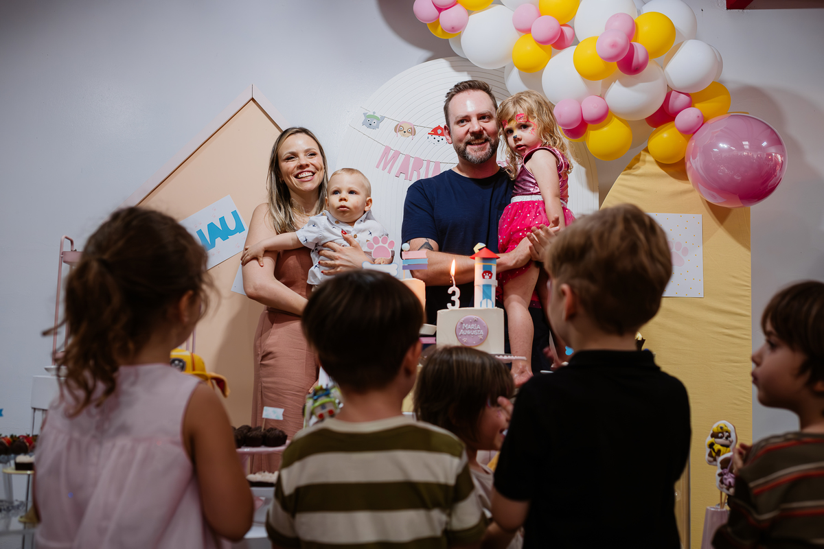 Na hora do parabéns, um pouquinho de vergonha apareceu, mas logo se foi, deixando espaço para a festa continuar com toda energia. Eu, que tenho o privilégio de fotografar a Maria desde que ela ainda estava na barriga da sua mãe, me sinto emocionada a cada novo capítulo dessa história, vendo como ela cresce rodeada de amor e felicidade. Cada momento, cada sorriso, cada bagunça que ela fez hoje ficará guardado com muito carinho no meu coração.