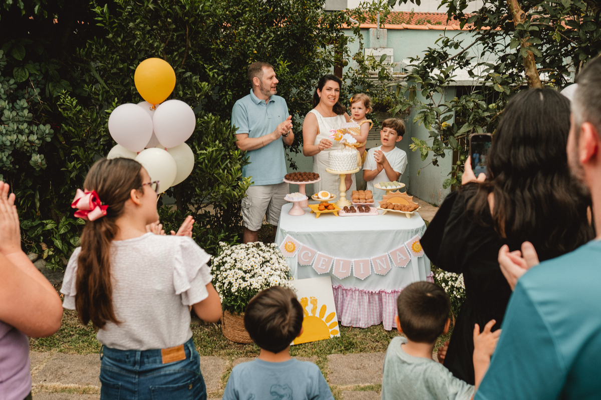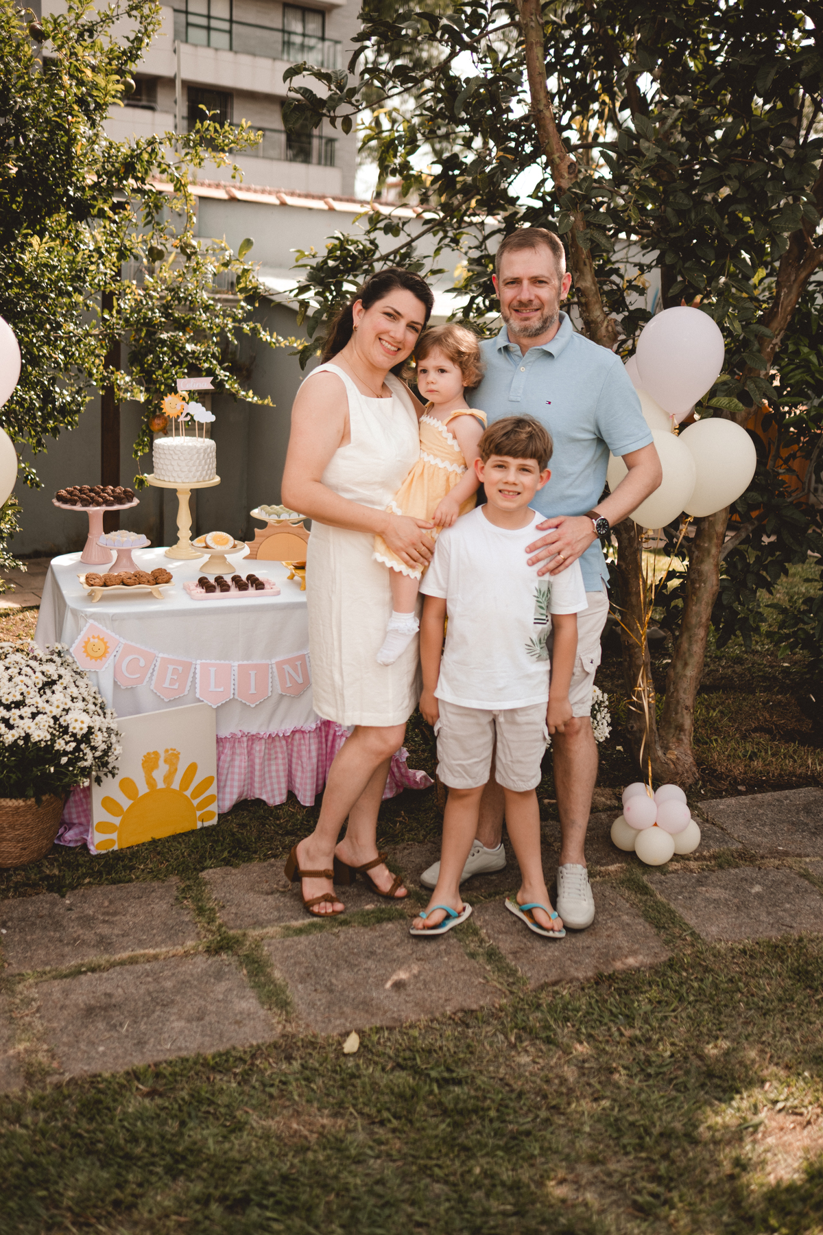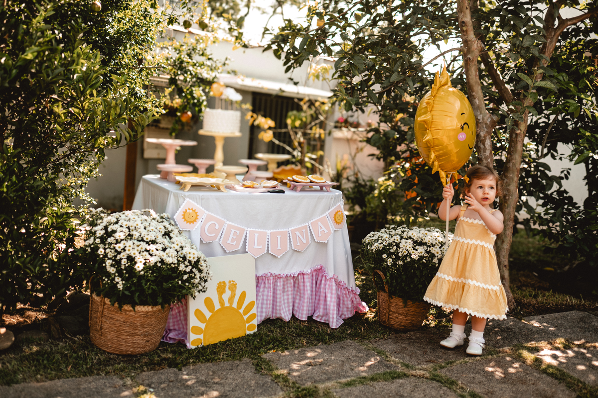 O aniversário de dois anos da Celina aconteceu no jardim de casa, em uma celebração íntima, leve e cheia de afeto.