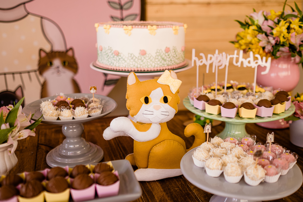 A festa da Diana foi no quintal de casa e é incrível como os convidados se sentem a vontade nesse formato de festa. Mas mais que isso é o quanto o aniversário em casa promove momentos que em outro lugar não aconteceriam, como ter o Snow (o dog da Di) ficar no portão de casa recepcionando os convidados muita festa. Não tinha quem chegasse e já não fosse dar um carinho nele. Snow nasceu em um criadouro de cães e foi salvo pela avó da Di. Ah, e tem os gatos também que ficarem dentro de casa e tem o registro no “reino” deles. Falando em animais de estimação... o tema da festa da Diana foram os próprios bichanos. SIIIIIM!!!! E a Carol, mãe da Di, fez uma das decorações mais lindas e que atraiu os olhares dos convidados. Eu amo decorações assim porque elas tem sentindo de estar ali, sabe? Festa em casa com a representação dos animais de estimação da família, tudo isso aliado a um bom gosto incrível!