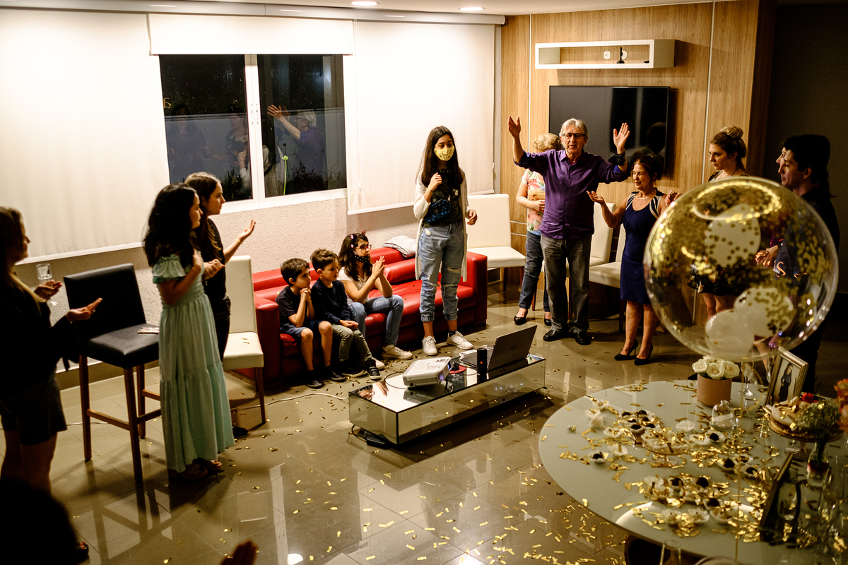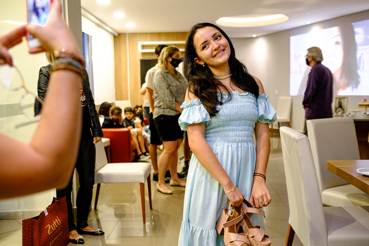 Mariana completou os tão sonhado 15 anos durante a pandemia e é claro que uma data dessa merece ser comemorada, dentro das possibilidades permitidas. Sua família organizou uma carreata surpresa em frente a sua casa com direito a balões, buzinaço e a presença das amigas que há meses não se viam. Foi muito emocionante! Cada abraço, uma lágrima de saudade. Após toda esta festa, a família chamou os mais chegados para um coquetel, também surpresa, para a aniversariante. Não podemos esquecer do vídeo com depoimentos super cheios de verdade e emoção. Foi um dia inesquecível para a Mari e para todos que a ama! E eu tive a alegria e a responsabilidade de contar toda esta história com muito carinho e amor para que ela sempre lembre com carinho de tudo o que fizeram por ela.