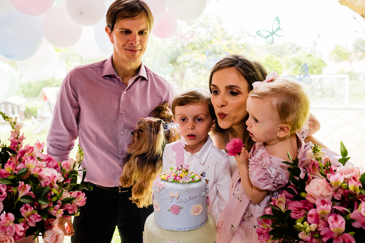 A festa teve tema o jardim encantado e as borboletas e estava num capricho enorme. Muitos detalhes e cores em tons candy. A festa de aniversário da Cecília recebeu toda a família e inclusive seus bisavós, que já são figuras importantíssimas e marcantes nos eventos da família. Falo isso porque já fotografo as festas dessa família tão querida desde o 1º ano de vida do seu irmão, Augusto.