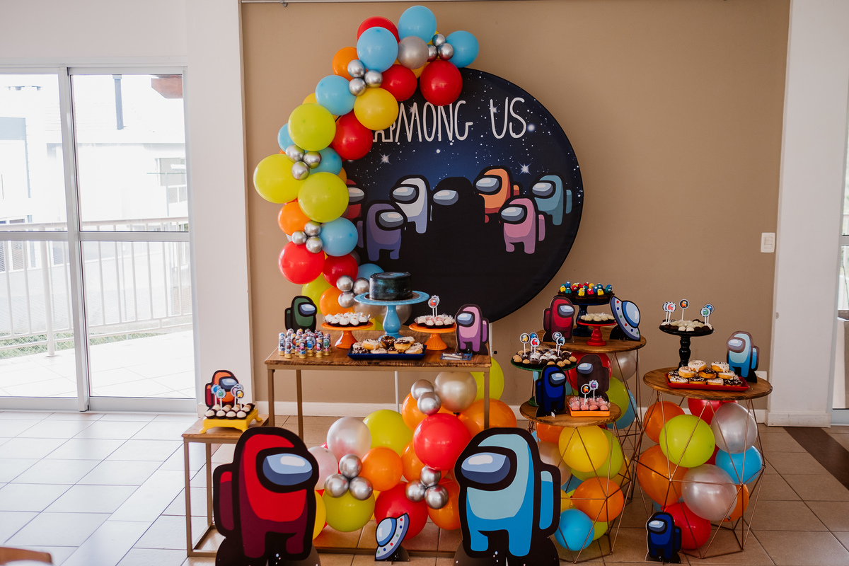 Todo aniversário do Otto tem geladinho, já é marca registrada da festa. Assim que começa o aniversário ele já vai até o freezer e pega direto. A festa toda tem um geladinho na mão do Otto. O tema da festa de aniversário do Otto foi Among us, que é sucesso absoluto entre as crianças. O joguinho que tem o impostor faz a cabeça da garotada (e de muitos adultos também).