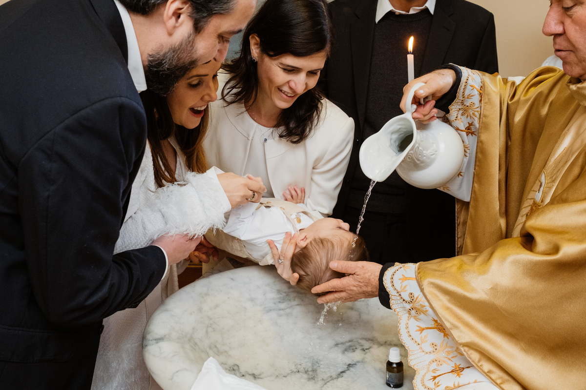 O Theodoro estava super tranquilo e feliz durante o batizado. Ele curtiu tanto o banhinho de água do batismo que o Padre Aparecido até repetiu pra eu garantir os melhores registros deste momento tão importante da sua vida cristã.