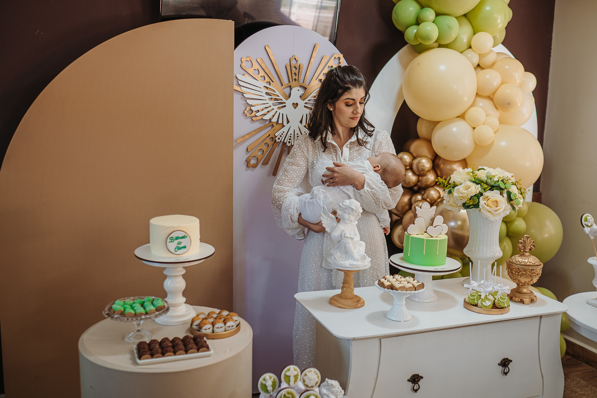 Batizado do Oliver realizado na Igreja São Carlos Borromeu, bairro Jardim das Américas, recepção e almoço na APCEF.