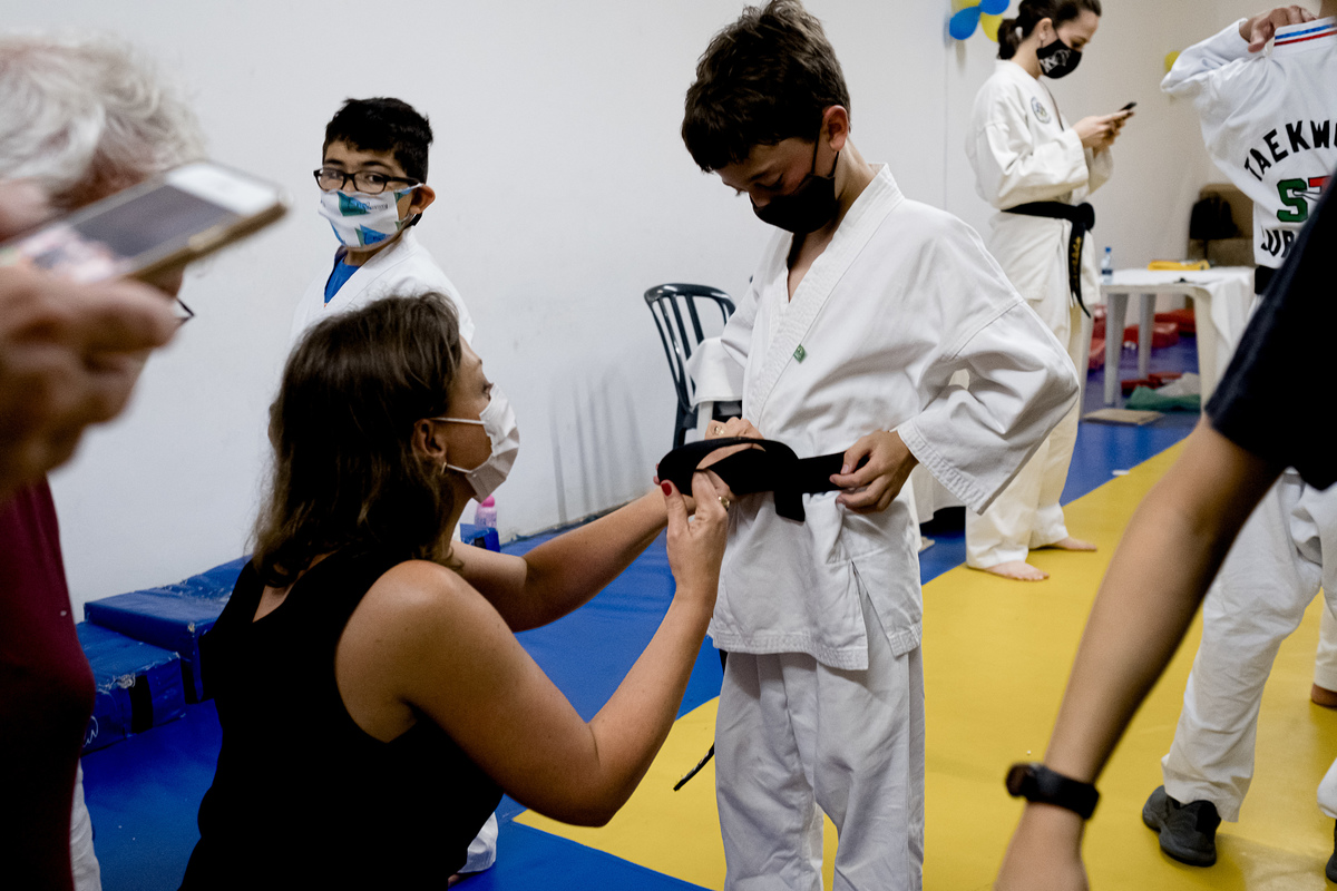 A troca de faixa no Taekwondo do Mathias - Fotografia Documental - Curitiba