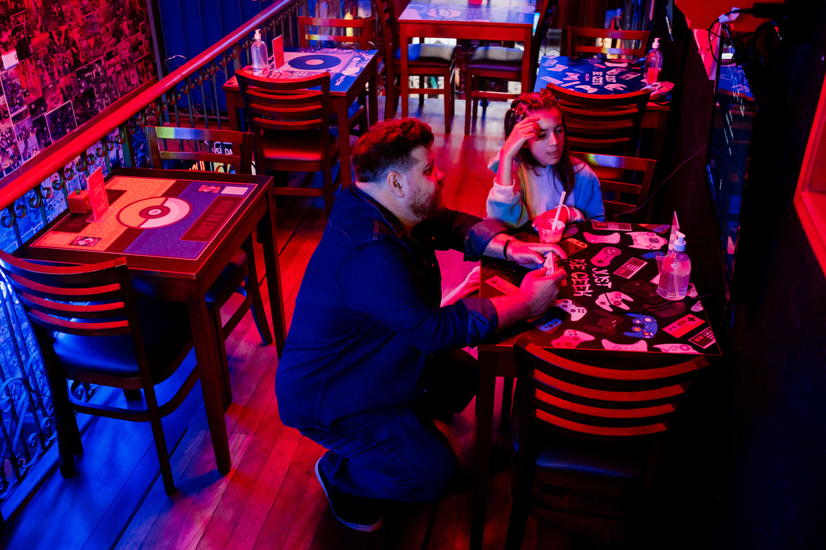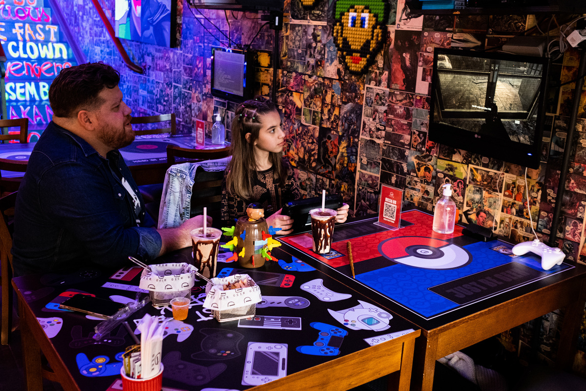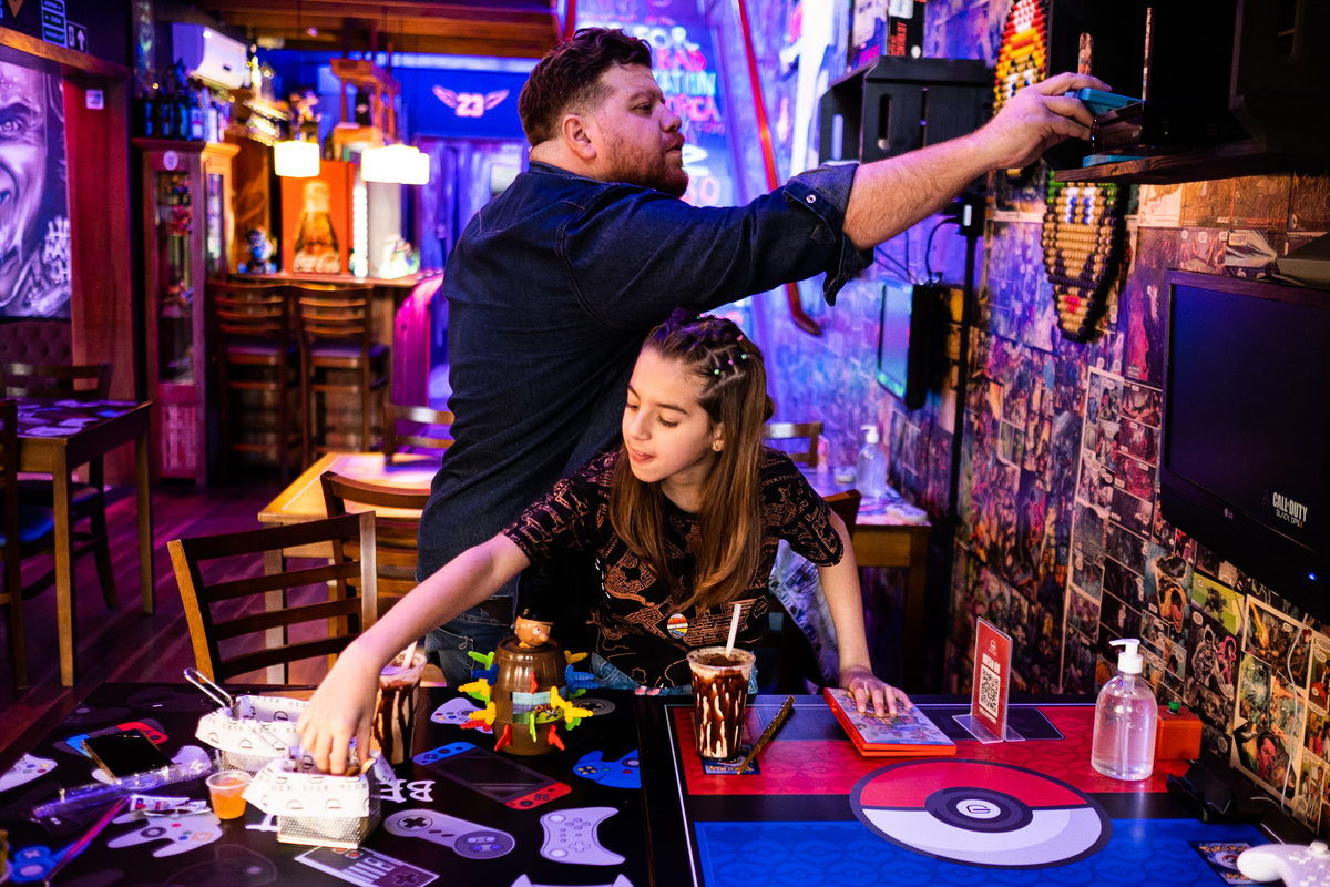 Ensaio fotográfico pai e filha, Clemerson e Heloísa, realizado no Geek Burguer, Curitiba.