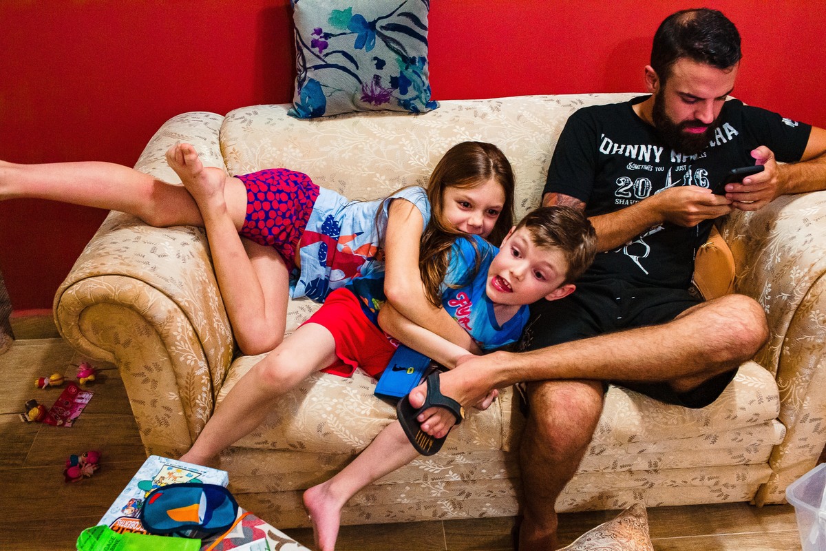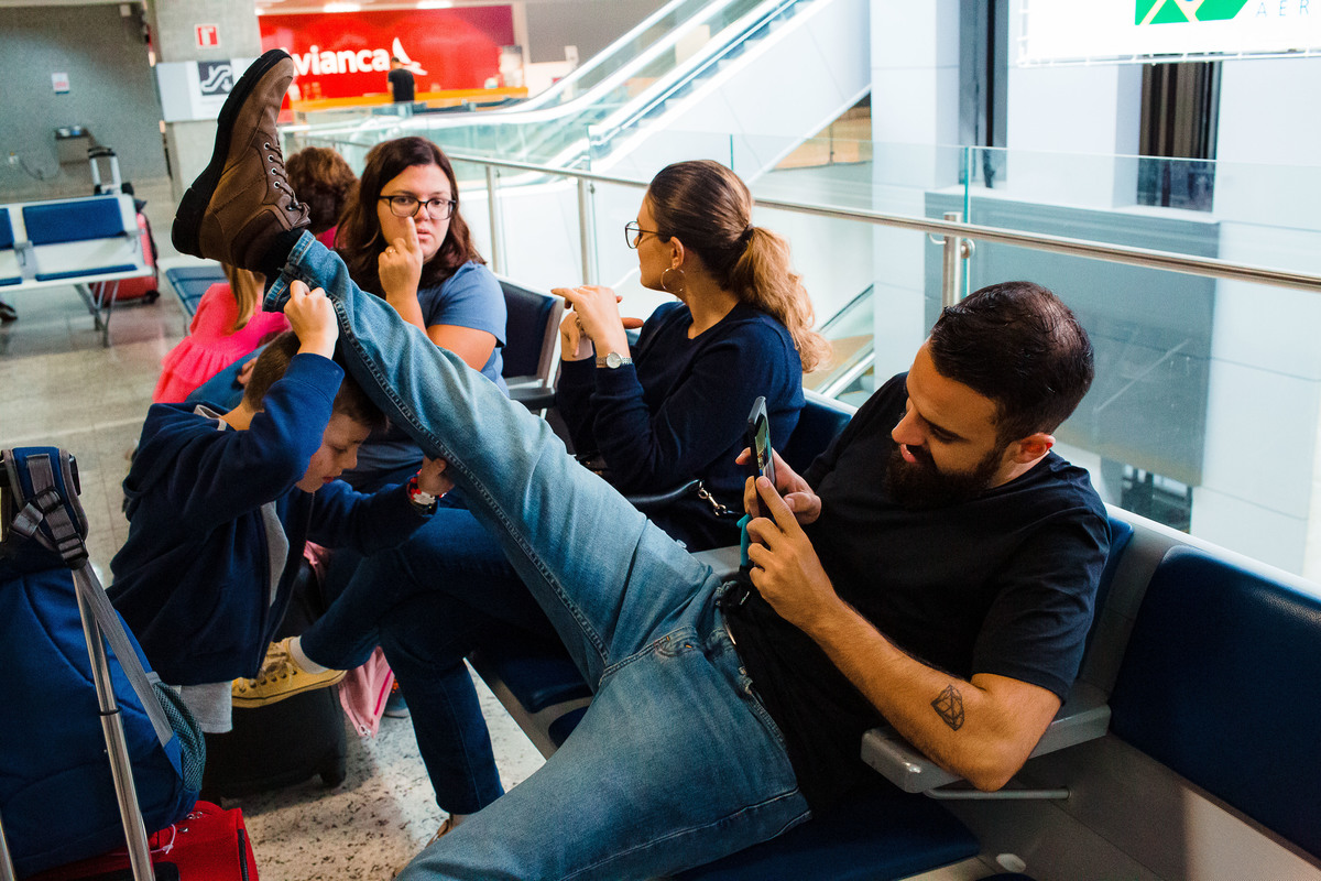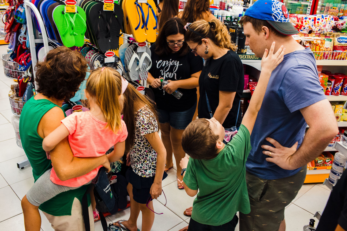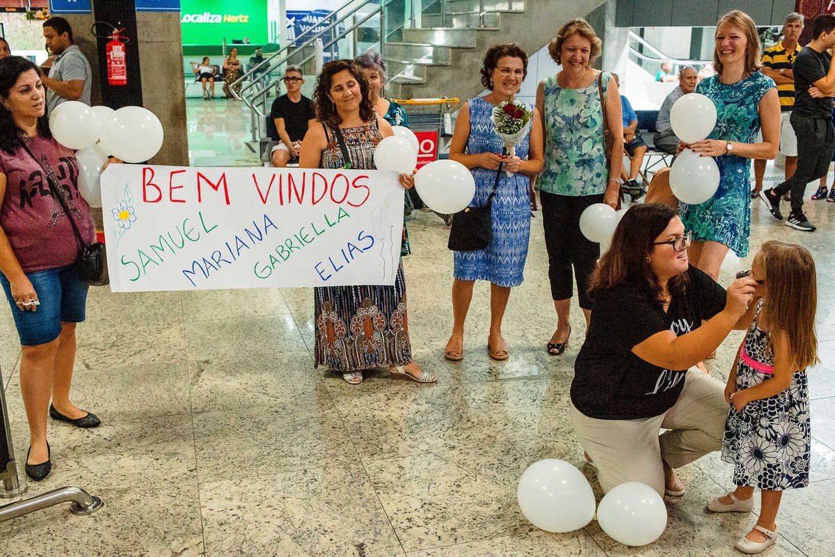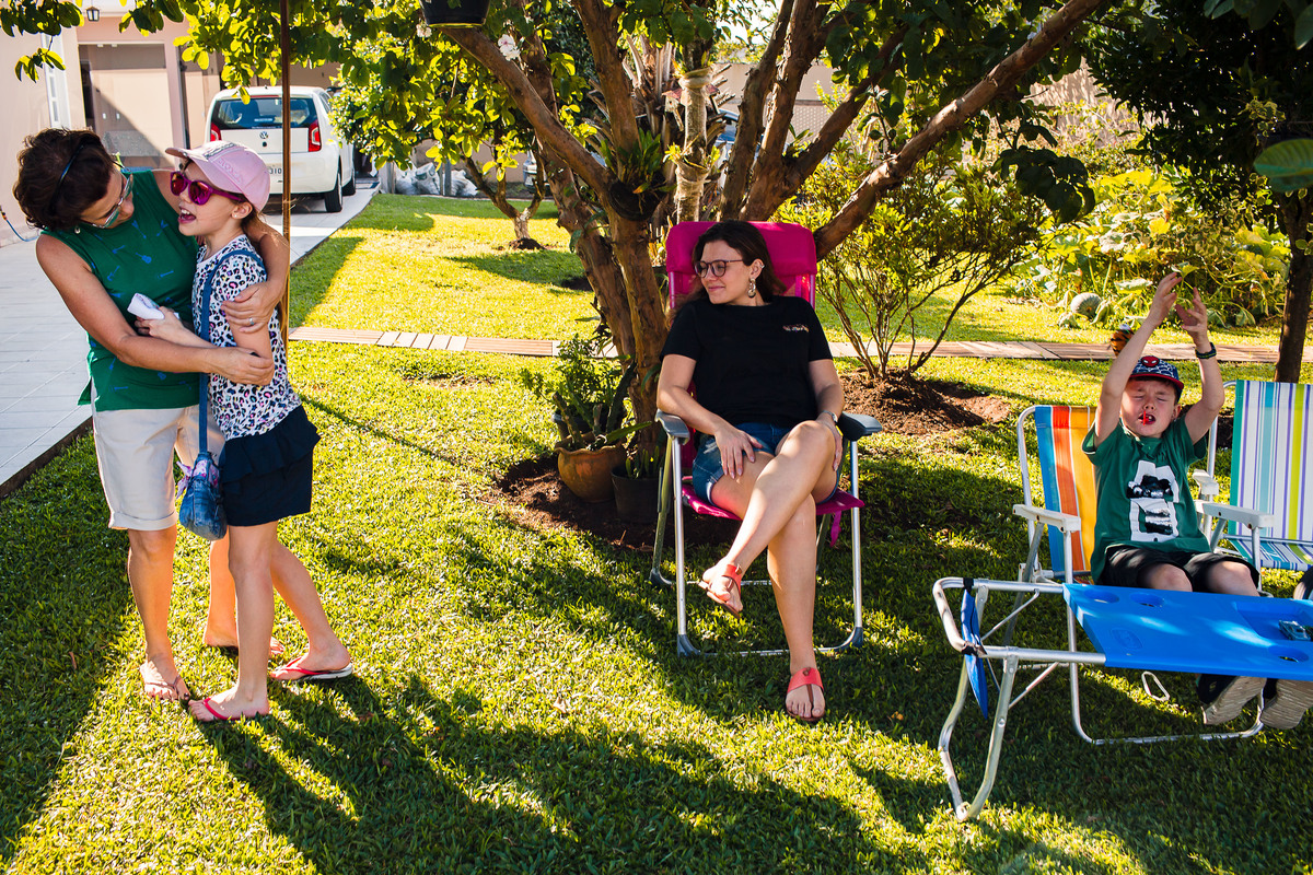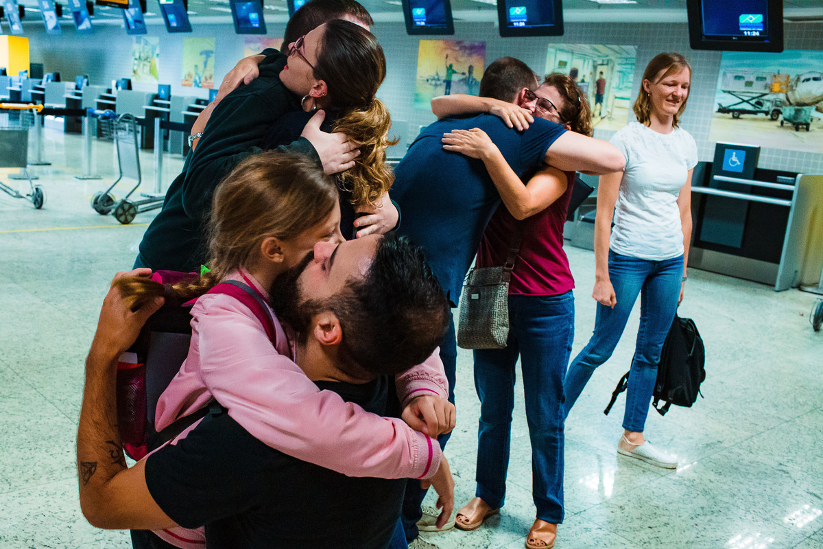 Eles moram na Suiça e, depois de 3 longos anos, vieram ao Brasil para passar as férias com a família que mora aqui. Passei mais de 30 horas com a família registrando a chegada, o 1º dia no Brasil e a despedida no aeroporto. Foram momentos de muita diversão, muita emoção e de abraços com muita saudade. Foi um tempo de viver o amor em sua plenitude, da Gabi e o Elias experimentarem sabores novos e da Juliana conviver intensamente com seus primos. A despedida no aeroporto foi muito difícil para todos - e pra mim também. As lágrimas da Flá olhando nos olhos do Elias representam o sentimento de todos.