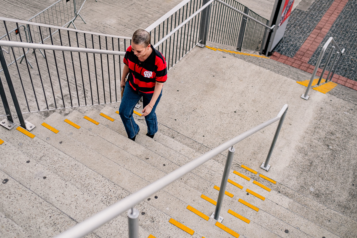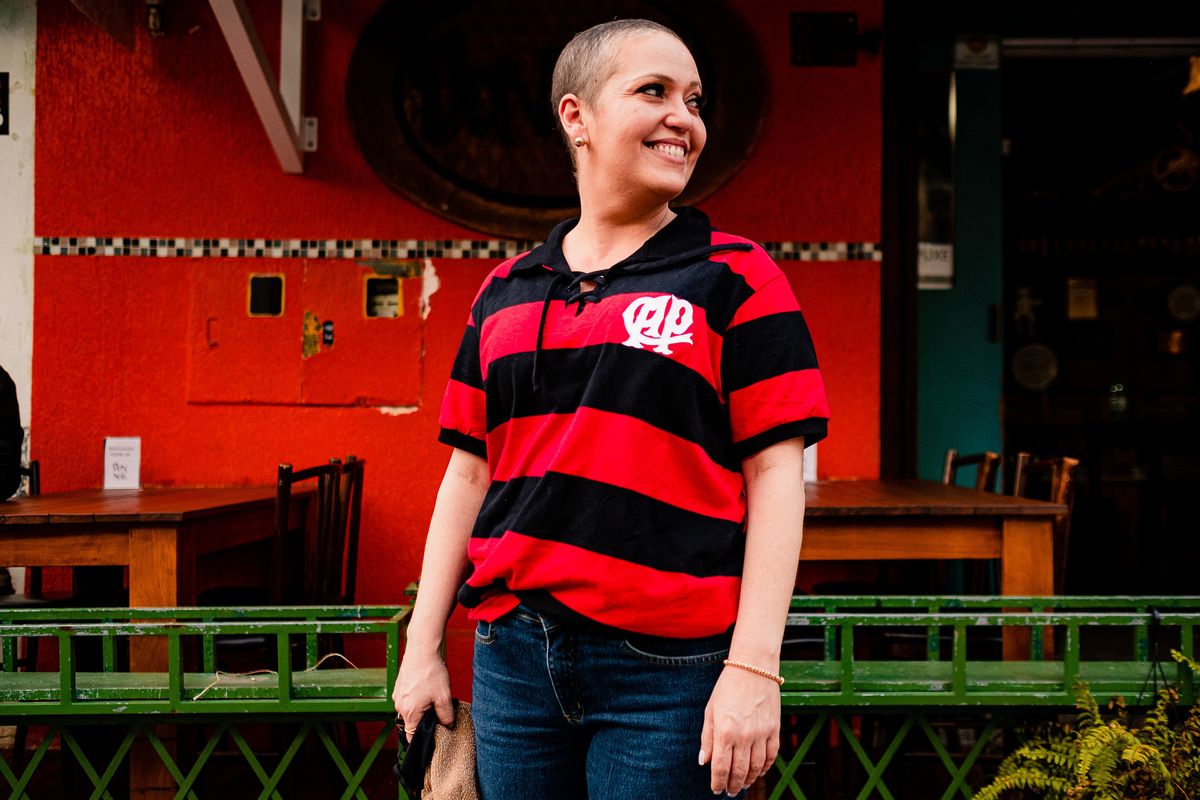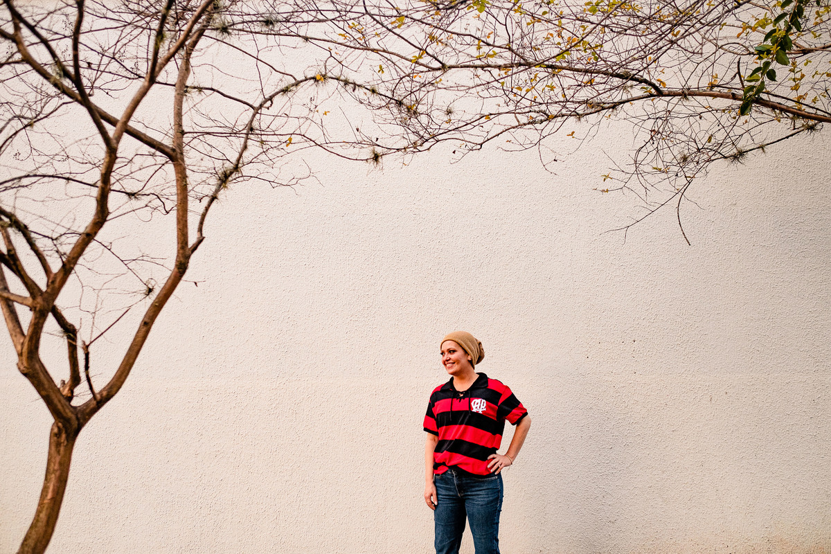 Meu coração era só explosão por ter tomado a decisão em gravar e não fotografar. Eu tinha o depoimento mais genuíno do mundo - e eu precisava fazer algo com aquilo. Voltei a fotografar, demos uma volta na praça, fomos na esplanada do estádio (que é linda), demos até uma passada no bar que a Lu faz o esquenta pré jogo com os amigos. Finalizamos o ensaio e eu fui com aquilo na cabeça: como é que eu vou fazer isso chegar até o Bruno Guimarães que tá lá na França? Fazer um vídeo, claro!