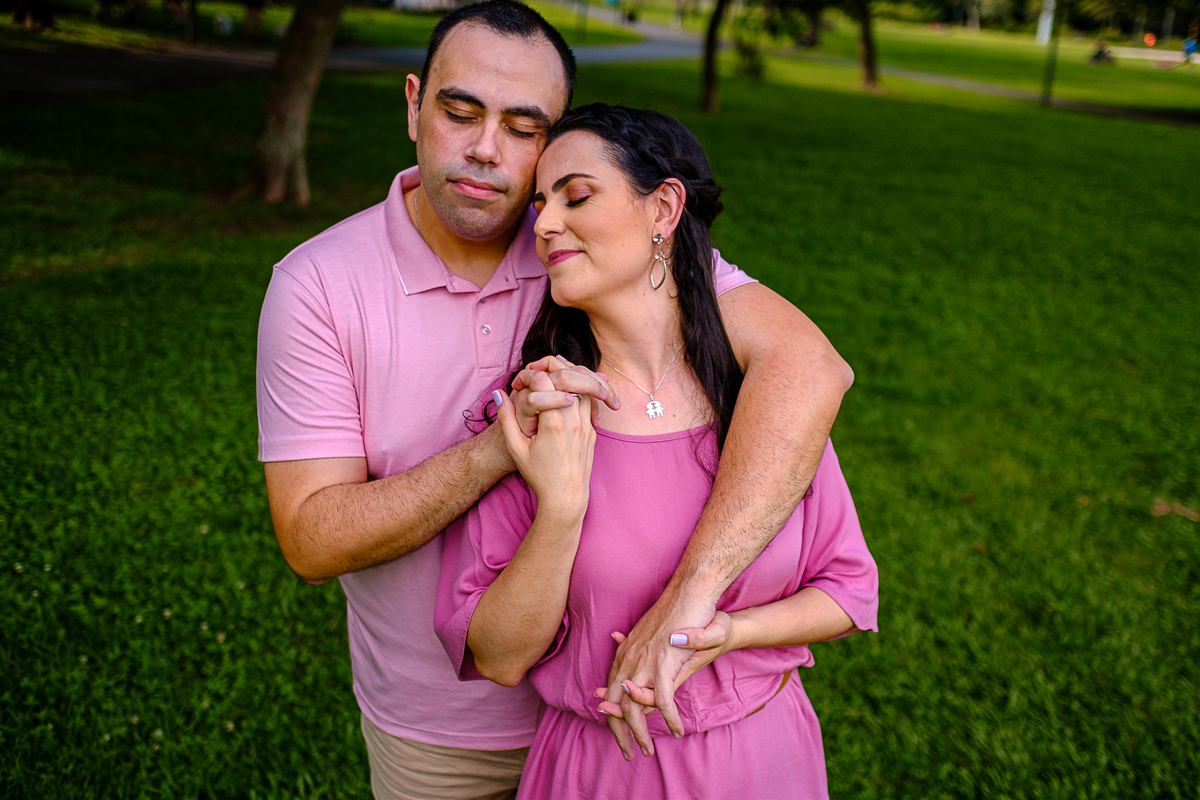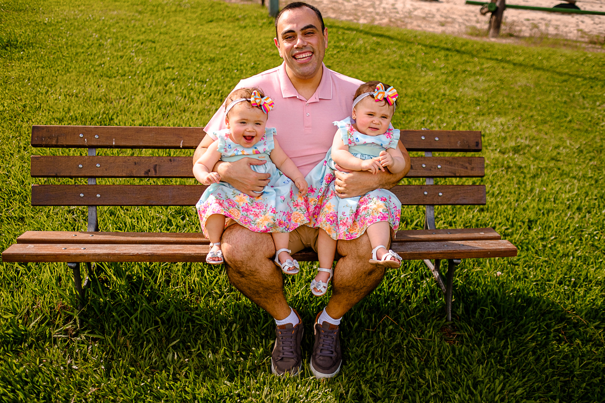 O local escolhido para o ensaio foi o Parque Bacacheri, em Curitiba, numa tarde super agradável e com sol. Aproveitamos muito as áreas verdes que o parque tem, além de fazer várias fotos clássicas de gêmeos, como a foto na grama e no carrinho.