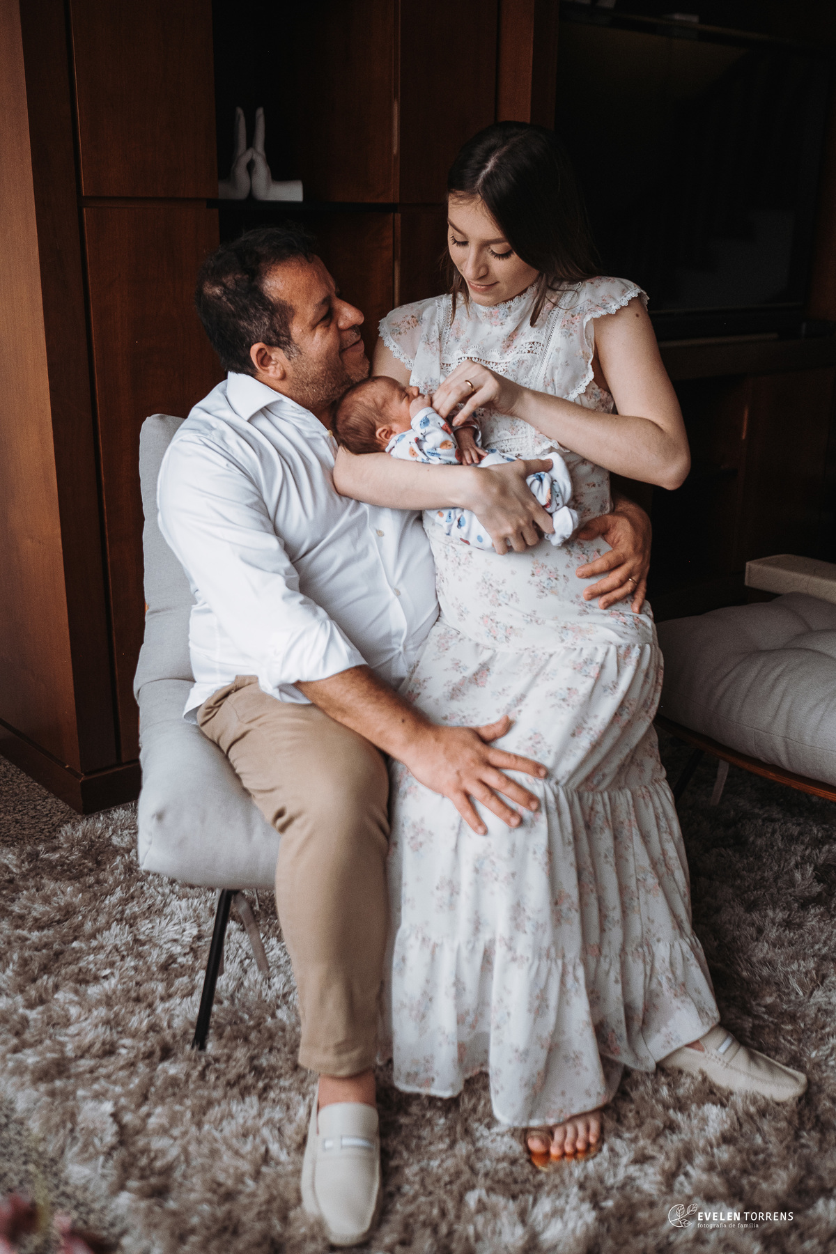 As fotografias newborn lifestyle, feitas em casa, foram registradas por Evelen Torrens, Curitiba.