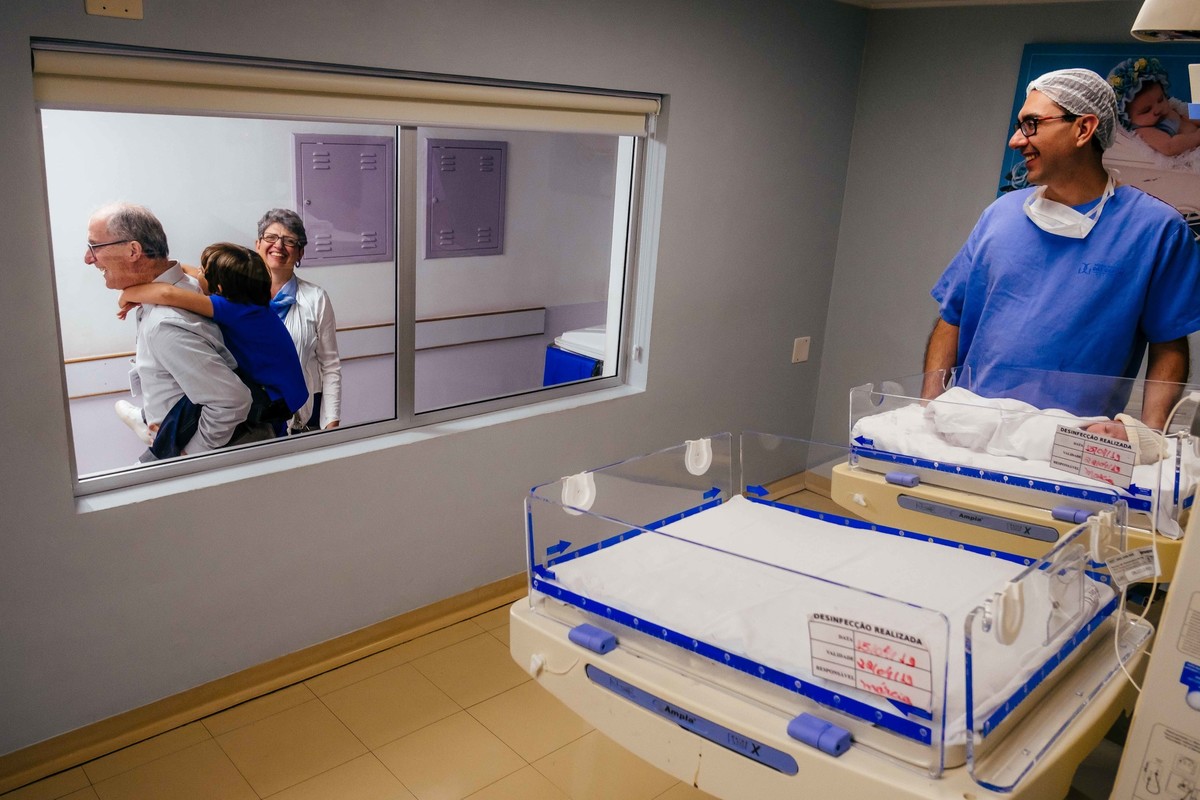 Toda vez que uma família me chama para registrar o nascimento do filho eu fico uma pilha de ansiedade e tensão. Ansiedade pela família e tensão comigo porque são tantas coisas pra eu me preocupar na hora. Isso tudo se dissolve até eu ficar com a família naquele tempo sagrado deles. São nesses momentos que você ouve as histórias pra aliviar a ansiedade, de rir e de se emocionar com o que realmente importa: a vida. E foi assim com o Mathias e putz....meu Deus, como foi tudo mágico! Assim que encontrei a Cris, o Fernando e o Cadu já senti que seria especial. Que família mais gostosa de estar perto! Conversamos e rimos bastante até a hora de sermos chamados. Nessa hora o coração acelera e só deixo que a emoção deles direcionem o meu coração. A Cris, antes de entrar, só me fez um pedido: quero que você seja os meus olhos na hora que o Cadu conhecer o Mathias. Mathias nasceu agarrando o pano do médico, de braços abertos e com um choro suave. Cris e Fernando super emocionados e nessa hora não tem que o que me controle pra não me emocionar junto. Mas eu não imaginava o que nos aguardava lá no vidro.... Cadu estava HIPER emocionado, feliz, feliz, feliz... e com aquelas lágrimas de emoção o tempo todo nos olhos. A família toda estava irradiante, mas o Cadu...Ah, Cadu, como você me emocionou com tanta verdade no olhar. As lágrimas eram a forma do seu coração transbordar o sentimento mais nobre de todos.